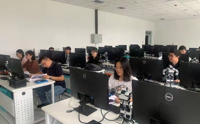第二阶段为智能感知与控制机器人培训,在第一阶段的基础上展开。此阶段侧重于教授师生们如何利用人工智能技术,如机器学习、深度学习、机器人操作系统等,实现对机器人的智能感知与控制。师生们通过两位老师的指导进行实际操作,理解和掌握了相关技术的实际应用。