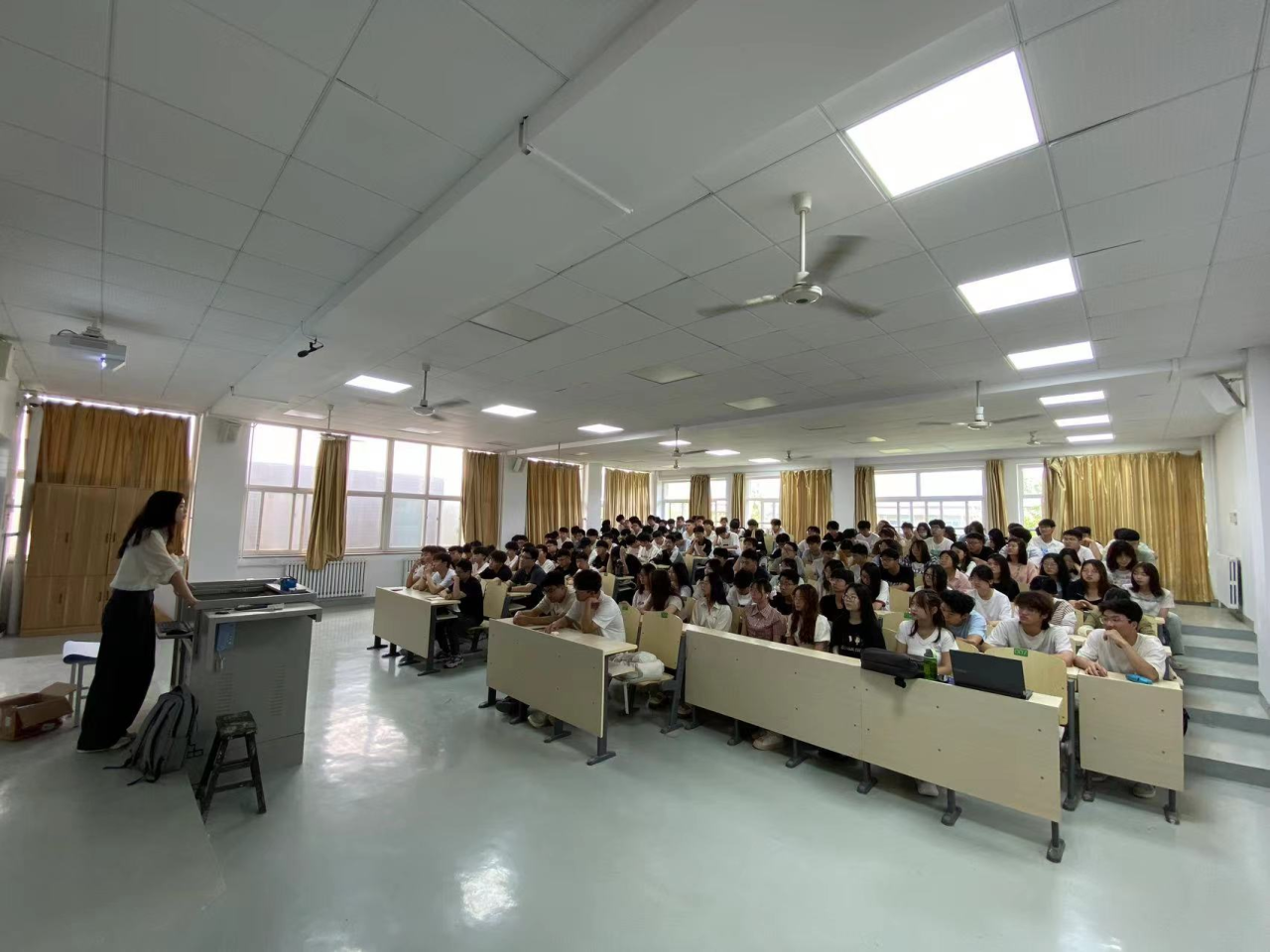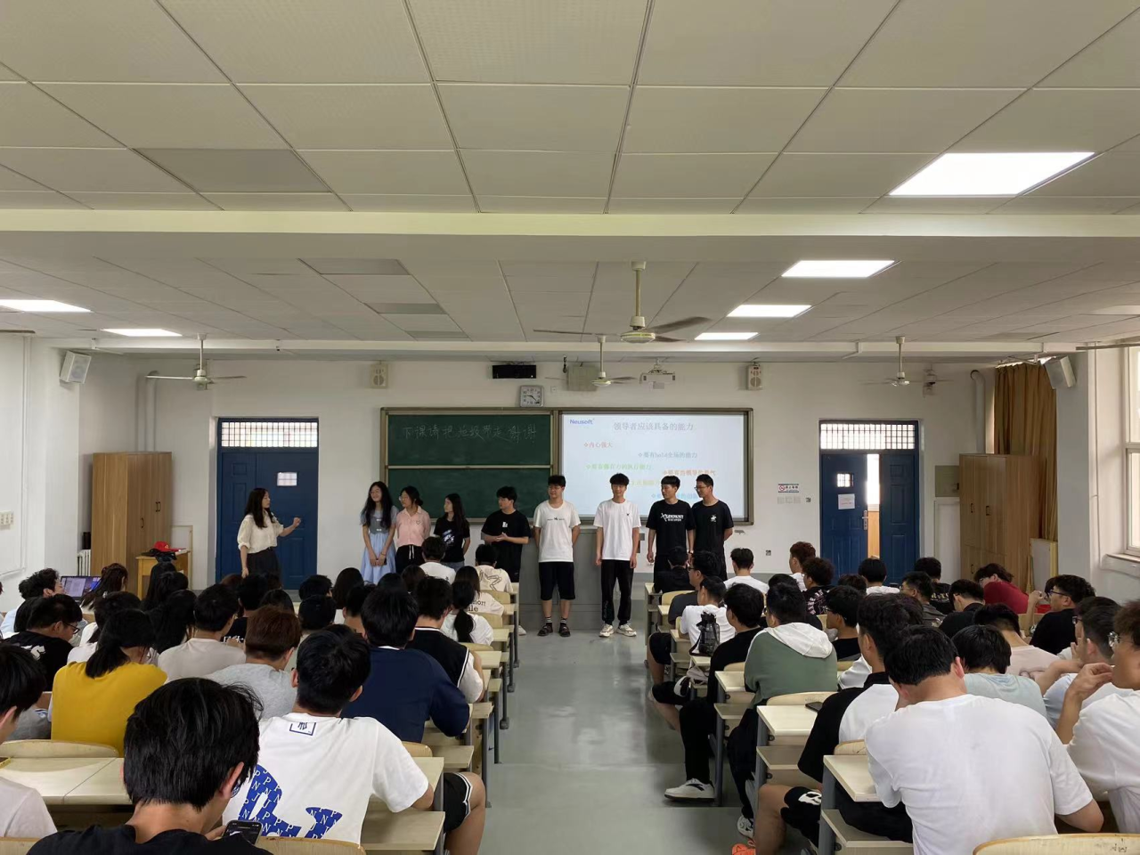 参加见习活动师生一行先后在基辅会堂听取科大讯飞公司人才培养业务部技术总监、人工智能高级讲师何泽老师关于《人工智能技术发展和应用》和华晟经世公司战略与MKT部行业解决方案总监何健老师《工业机器人技术发展现状及趋势分析》的讲座。