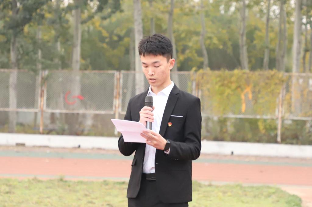 学生党员王彦博同学在国旗下进行了“担强国重任,做有为青年”的主题发言,号召广大青年学子要坚定理想信念,努力学习科学文化知识,不断提升自身综合素质,努力实现自身价值。