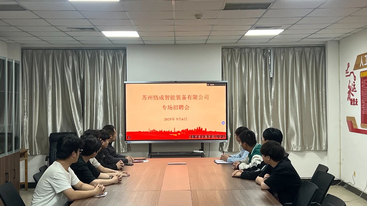 会上,苏州恪成智能装备有限公司负责人陈翰介绍了公司成立以来从事的主要业务和行业优势以及未来的发展方向,就此次招聘岗位和薪资待遇进行了详细说明。宣讲后就毕业生提出的疑问进行了细致的解答。