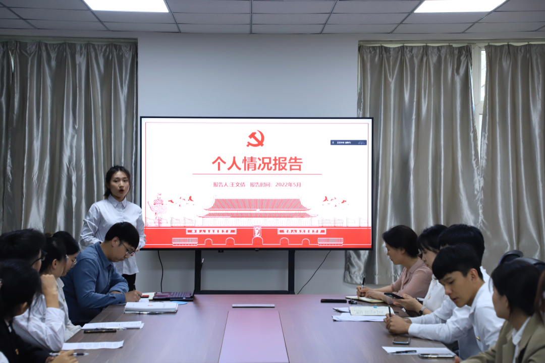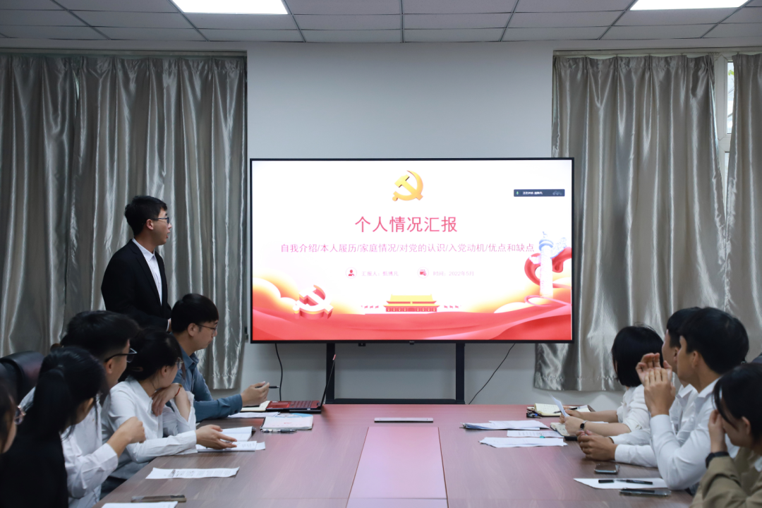 会议严格按照发展党员得组织程序进行,发展对象用多媒体汇报自己的基本情况、入党动机等,紧接着由入党介绍人介绍该同志的基本情况;之后支委会报告该同志的政审情况,并由与会党员对该同志的入党意见进行充分讨论;随后,支部大会以无记名投票的方式,决定是否通过接收该同志为中共预备党员。