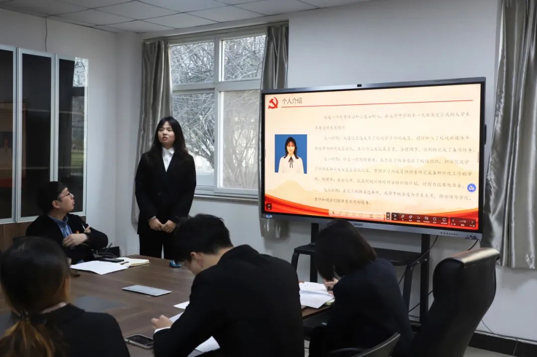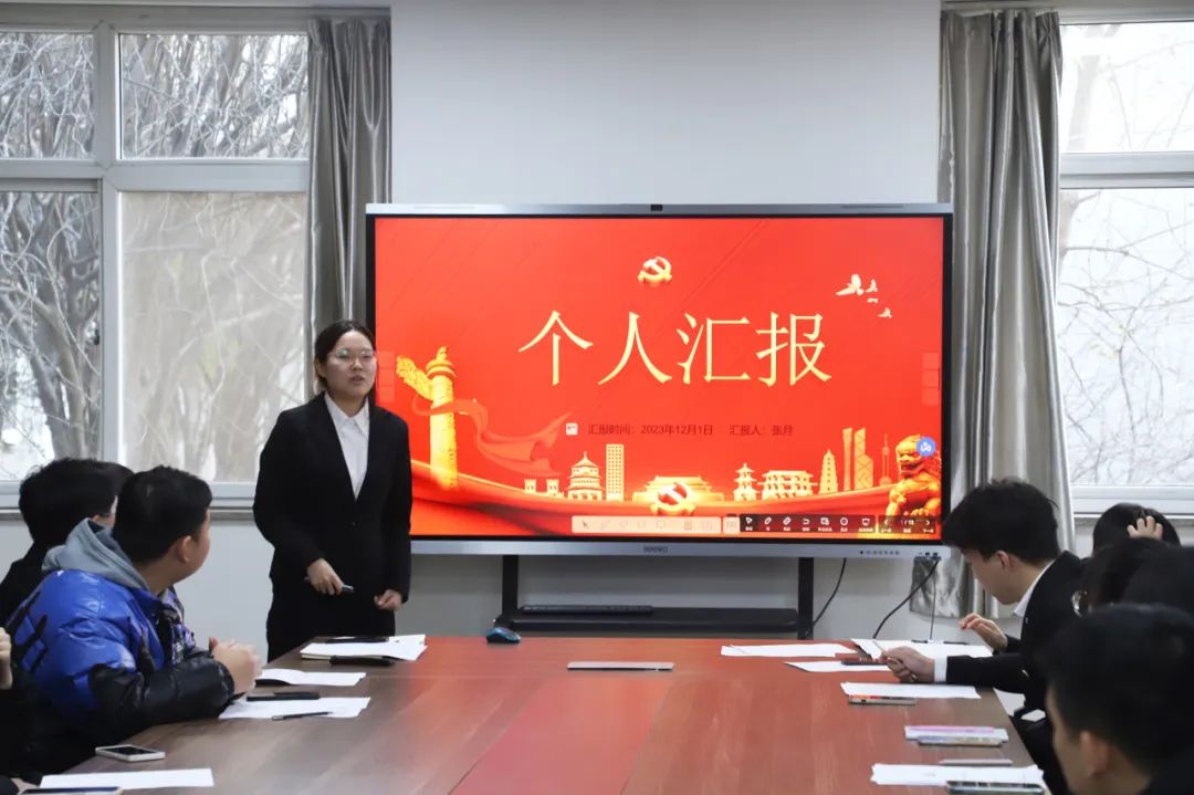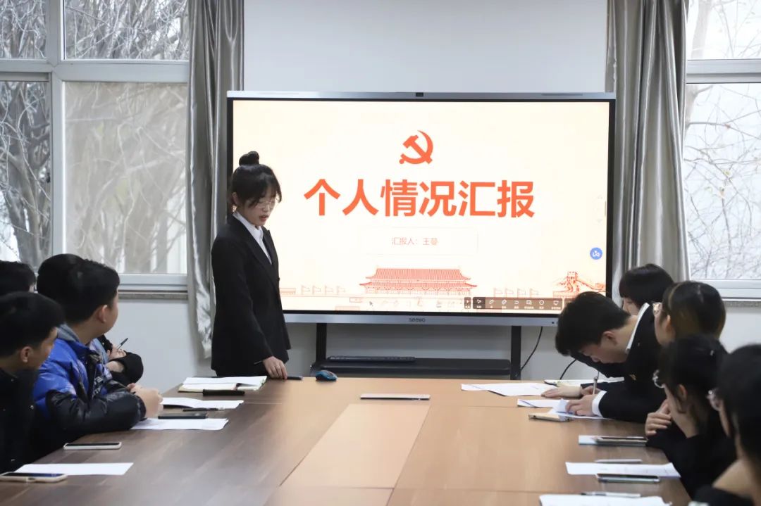 会议严格按照党组织接收预备党员有关程序进行。发展对象杨占森、李骏、张洪菊、钟雨杉、张月、马宇阳、王蔓依次汇报了自己对党的认识、入党动机、本人履历以及需要向党组织说明的问题,并表示成为预备党员后,将持续学思践悟强党性,努力在学习和工作中起模范带头作用。入党介绍人分别对杨占森等七名同志的学习、考察、表现等情况进行了介绍;学生党支部书记彭微同志宣读了对该七名同志的审查情况;与参会的党员进行了充分讨论,经无记名投票,一致同意接收该七名同志为中共预备党员。