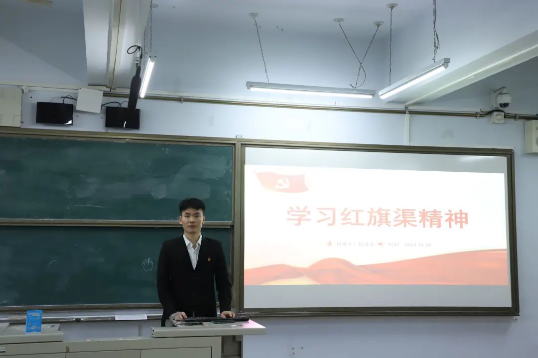 2023年12月20日下午,新葡8883官网AMG官网学生党支部在B-214召开了“两周一课”常态化党课培训活动,此次党课主题为“学习红旗渠精神”,由支部学生党员柏泽龙同志主讲,有新葡8883官网AMG官网学生党员及入党积极分子共91人参与学习。
