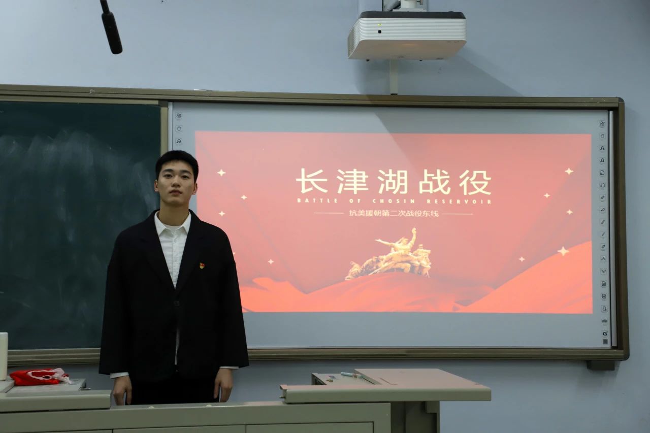 时代呼唤英雄,英雄光耀时代。通过此次党课让同学们感受到了英雄誓死捍卫阵地的钢铁意志、与敌人同归于尽的慷慨悲壮。在新的征程上,我们还会遇到很多风霜雪雨和惊涛骇浪,新时代青年要从长津湖战役中汲取砥砺前行的力量、以一往无前的奋斗之姿立于时代潮头、以舍我其谁的壮志豪情勇挑重担,主动担负起新征程的使命,为实现中华民族伟大复兴阔步前行!