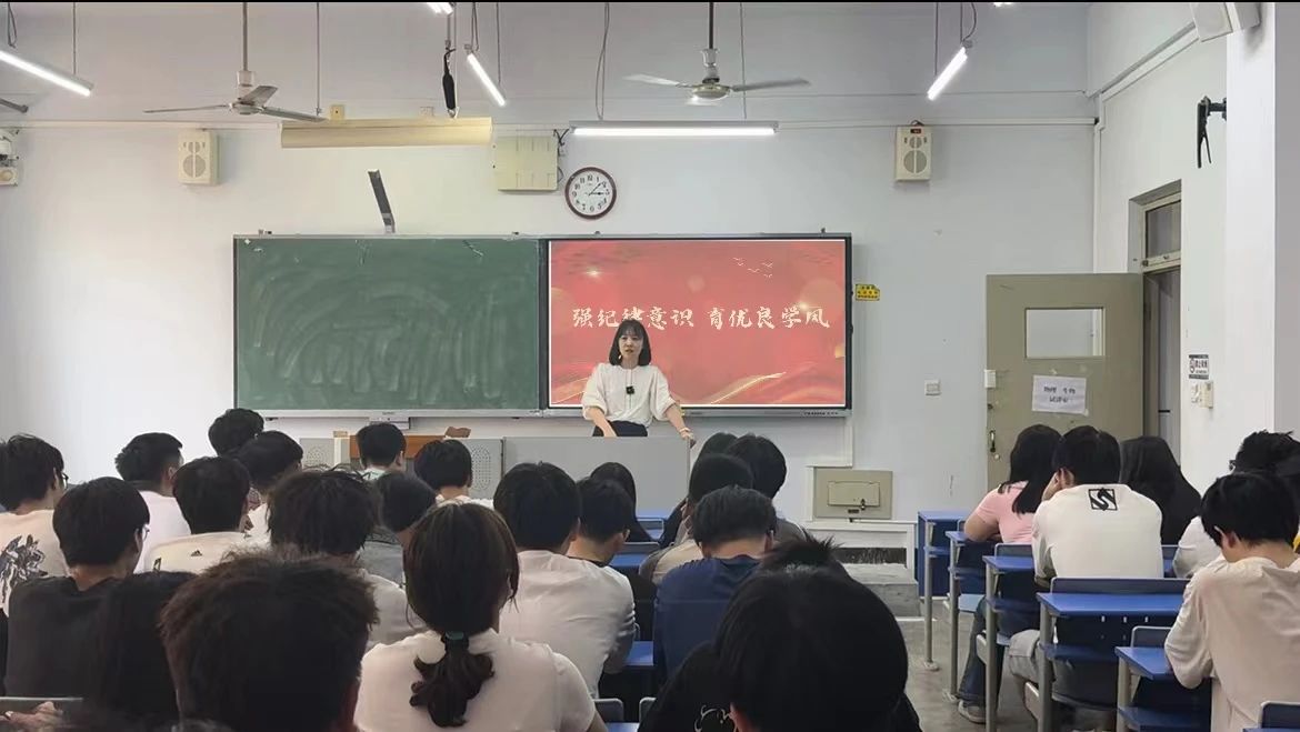 为强化纪律教育,深化学院学风建设,提升学生纪律意识和培养良好行为规范,2024年4月17日下午,新葡8883官网AMG官网学生党支部在B-202召开以“强纪律意识,育优良学风”为主题的专题党课,由新葡8883官网AMG官网学生党支部书记彭微主讲,有学生党员及入党积极分子共82人参与学习。