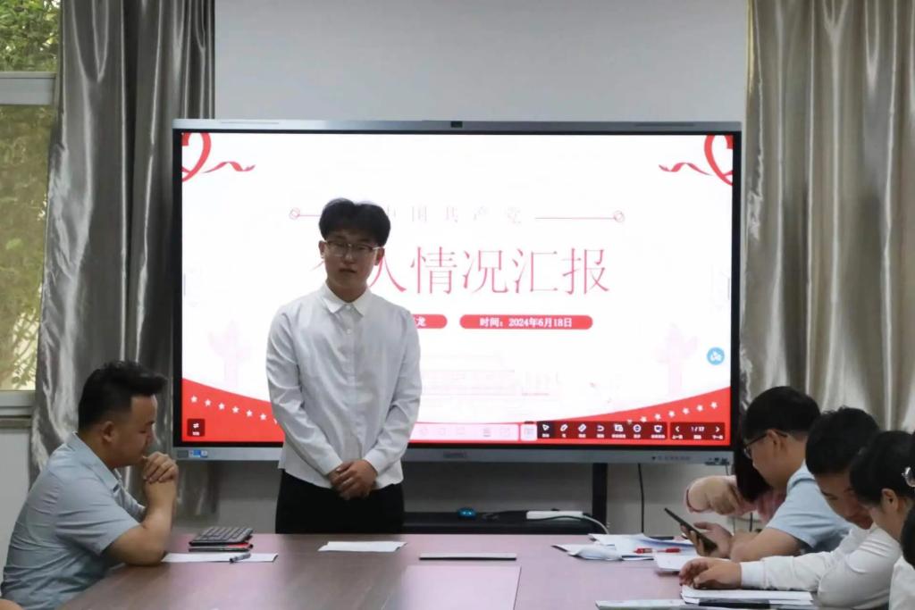 2024年6月18日下午,新葡8883官网AMG官网学生党支部在J-A-114组织召开关于接收预备党员的支部大会,校党委委员田欣列席会议,李星老师、刘森老师以及全体学生党员出席。大会由学生党支部书记彭微主持。