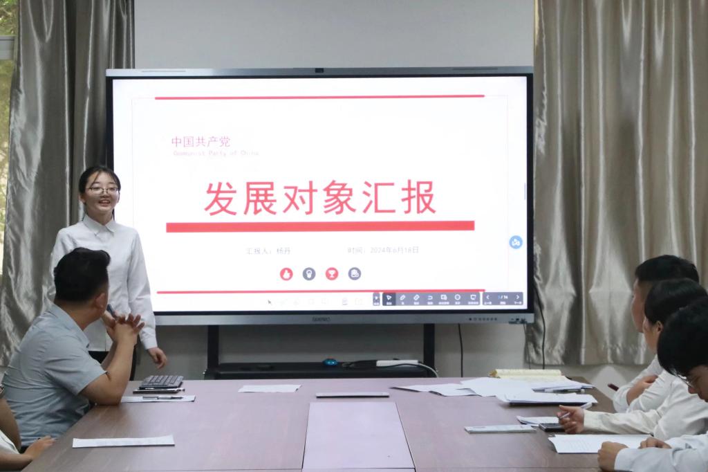 会议严格按照党组织接收预备党员有关程序进行。发展对象安思颖、孙晨、王佳琪、杨丹、王祚、赵峻枫、刘思佳、王彦博、闫海龙、姜凡依次上台,就自己对党的认识、入党动机、本人履历以及需要向党组织说明的问题等方面进行汇报。每位发展对象个人汇报完成后,入党介绍依次对该同志的学习、考察、表现等情况进行了介绍;学生党支部书记彭微同志宣读了对该同志的审查情况;与参会的党员逐个进行讨论,经无记名投票,一致同意接收该十名同志为中共预备党员。