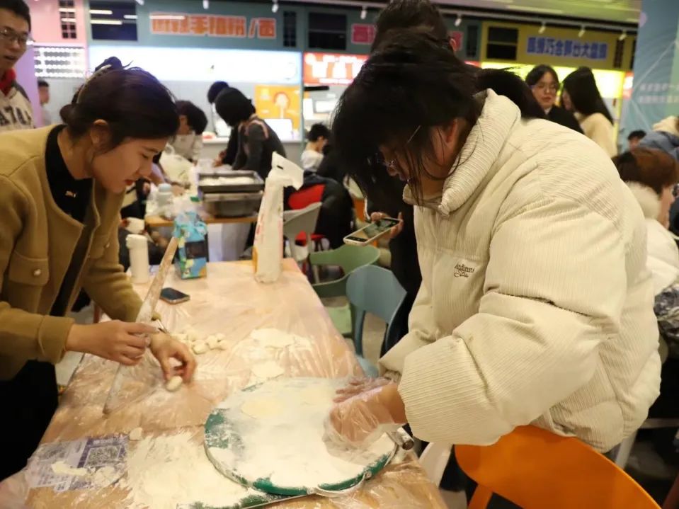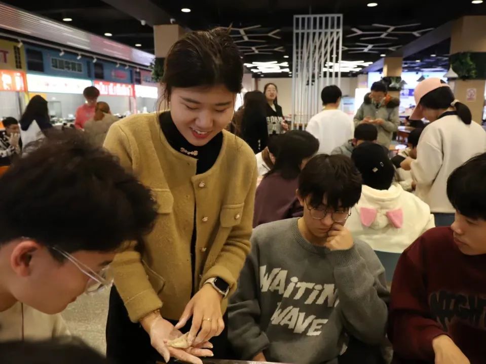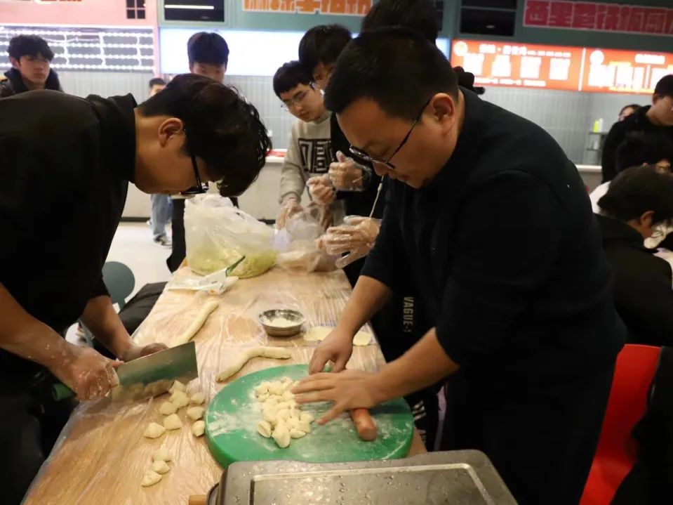 学院领导和其他教师们也积极参与了活动。学院领导亲自指导和示范和面技巧,而其他教师们则与学生们一同动手包制各式的饺子。他们的亲身参与不仅增进了师生之间的情感交流,也展现出教师们的亲和力和对学生的关怀之情。