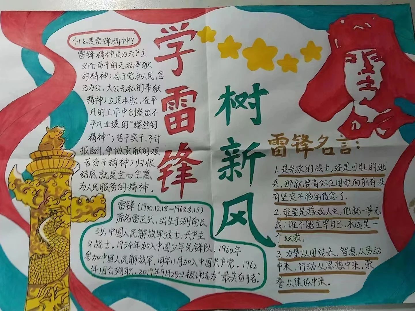 “三月暖阳沁人心,雷锋精神伴我行”雷锋手抄报优秀作品展示