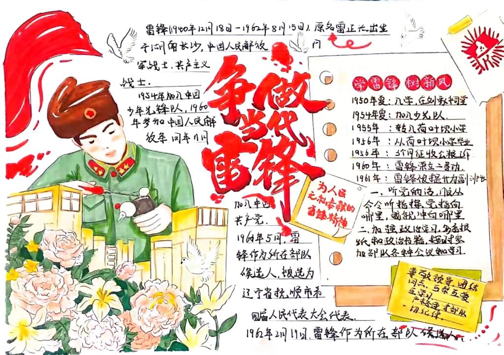为深入学习宣传贯彻党的二十大精神,大力弘扬“学习雷锋、奉献他人、提升自己”的志愿服务理念,激励大学生积极参与学雷锋志愿服务,新葡官网组织开展“三月暖阳沁人心,雷锋精神伴我行”主题手抄报征集评选活动。