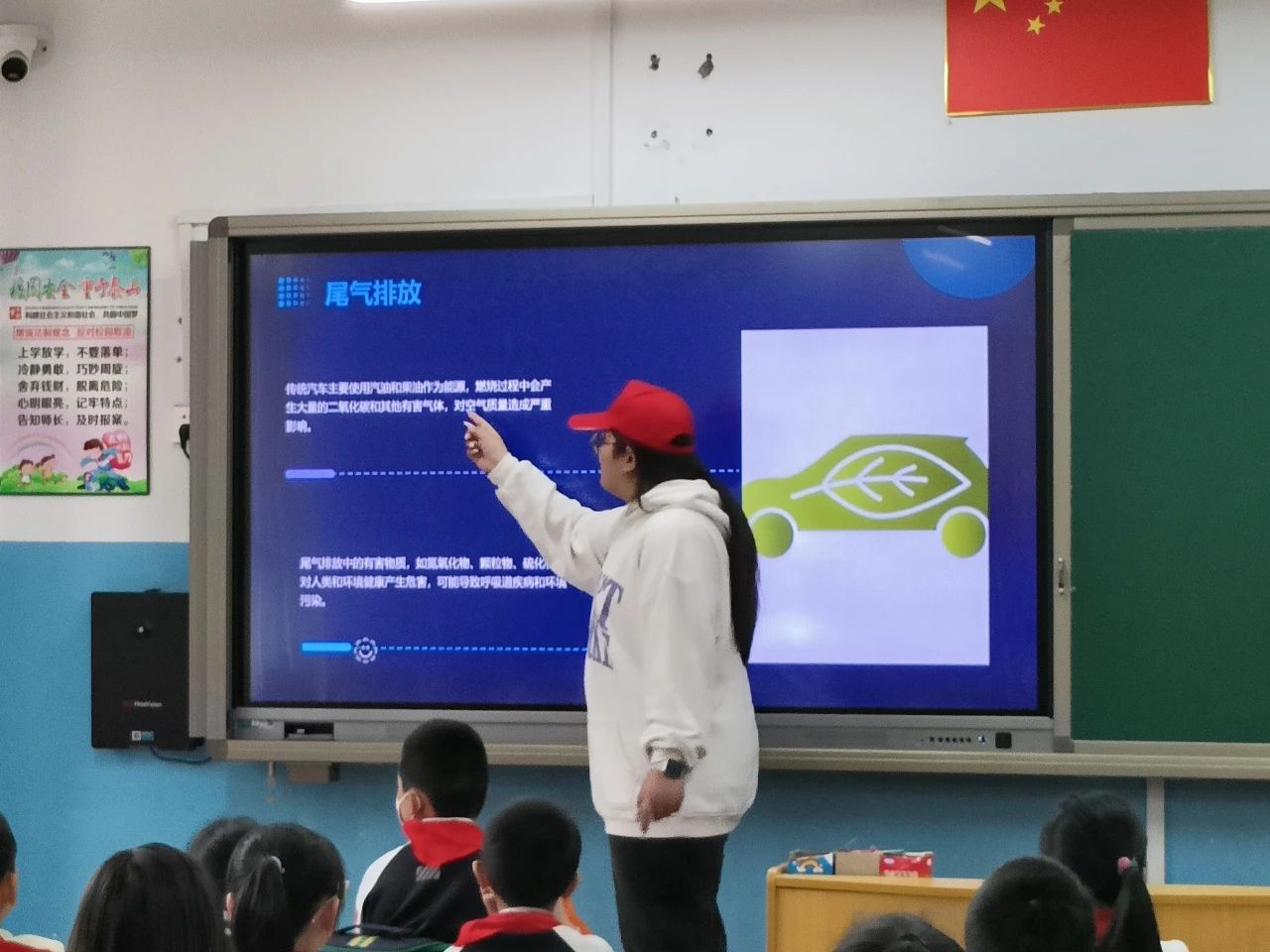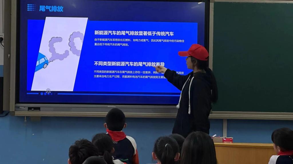 宣讲会上,志愿者们首先以PPT的形式由浅入深地介绍新能源汽车的基本概念、特点和未来发展动向,并组织同学们大胆想象当前新能源汽车相对于传统燃油汽车的优缺点。这不仅加深同学们对新能源汽车的认识,更让他们意识到了绿色出行及保护环境的重要性。随后,志愿者们耐心讲解新能源汽车的工作原理、种类等方面内容,同时向同学们抛出问题,引导同学们积极思考和探索新能源汽车的无限可能性,为同学们打开了科技创新的大门。