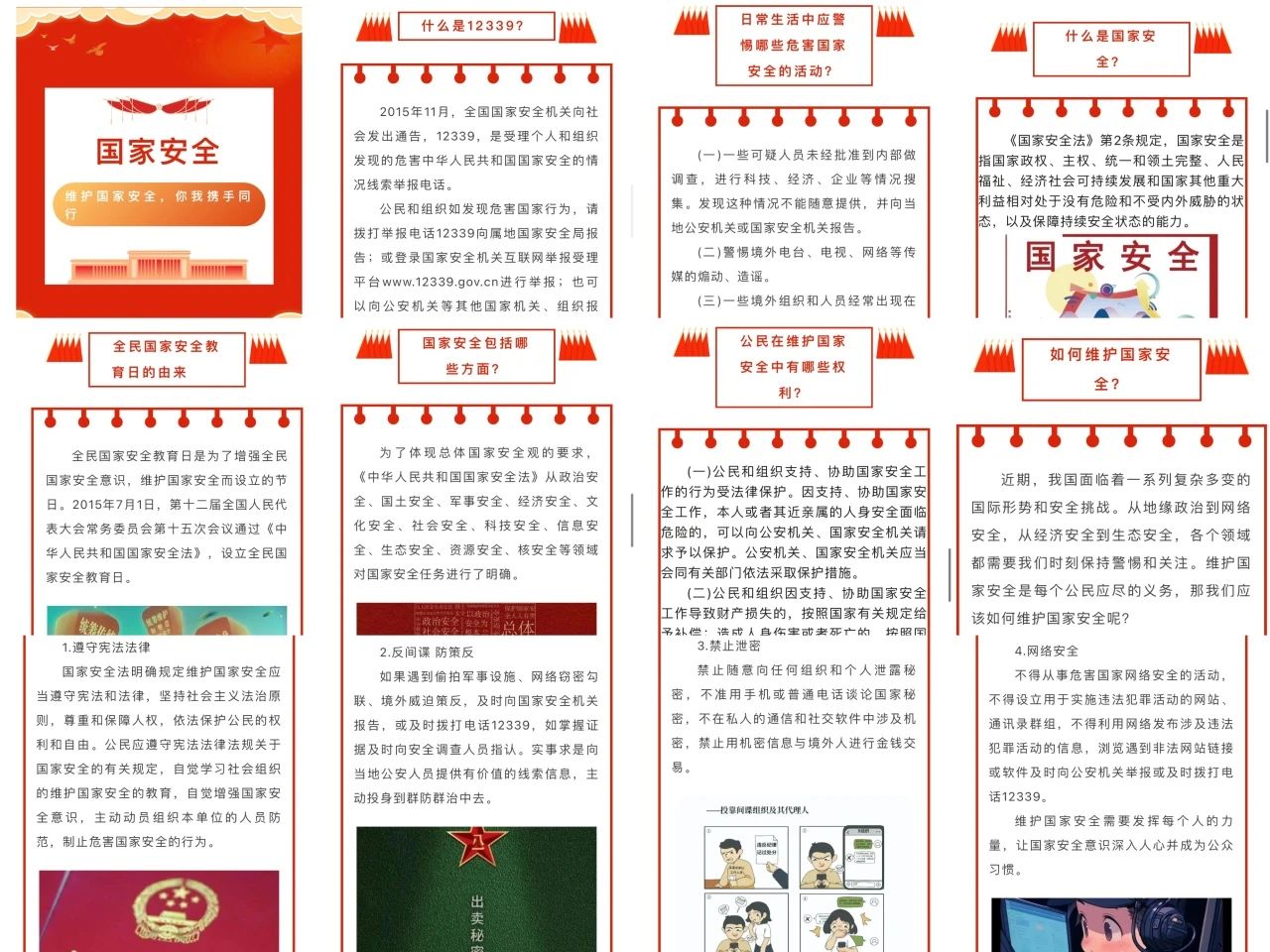 新葡官网微信公众号精心策划并推出了《维护国家安全,你我携手同行》的主题推送,主要包括“何为12339”、“公民在维护国家安全中有哪些权利”、“日常生活中应该警惕哪些危害国家安全的行动”以及“如何维护国家安全”等,不仅有效提升了团员青年对国家安全的认识 ,也呼吁着老师以及广泛学生群体们关注国家安全问题。