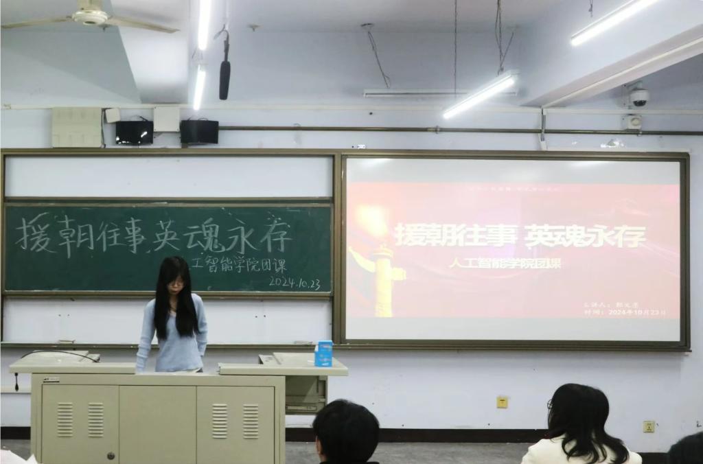 为了进一步提高大学生的理想信念教育,激发青年的爱国热情,增强学生的责任感和使命感。10月23日,新葡官网在B-111教室开展“援朝往事,英魂永存”主题团课宣讲,本次团课由2022级数据科学与大数据技术一班郭文墨主讲。以追忆抗美援朝,传承红色精神为主题,以学习抗美援朝的爱国主义精神为重点,学习抗美援朝精神的时代内涵,逐步提高青年的思想道德素质,全面培养同学们的社会责任感和历史使命感。