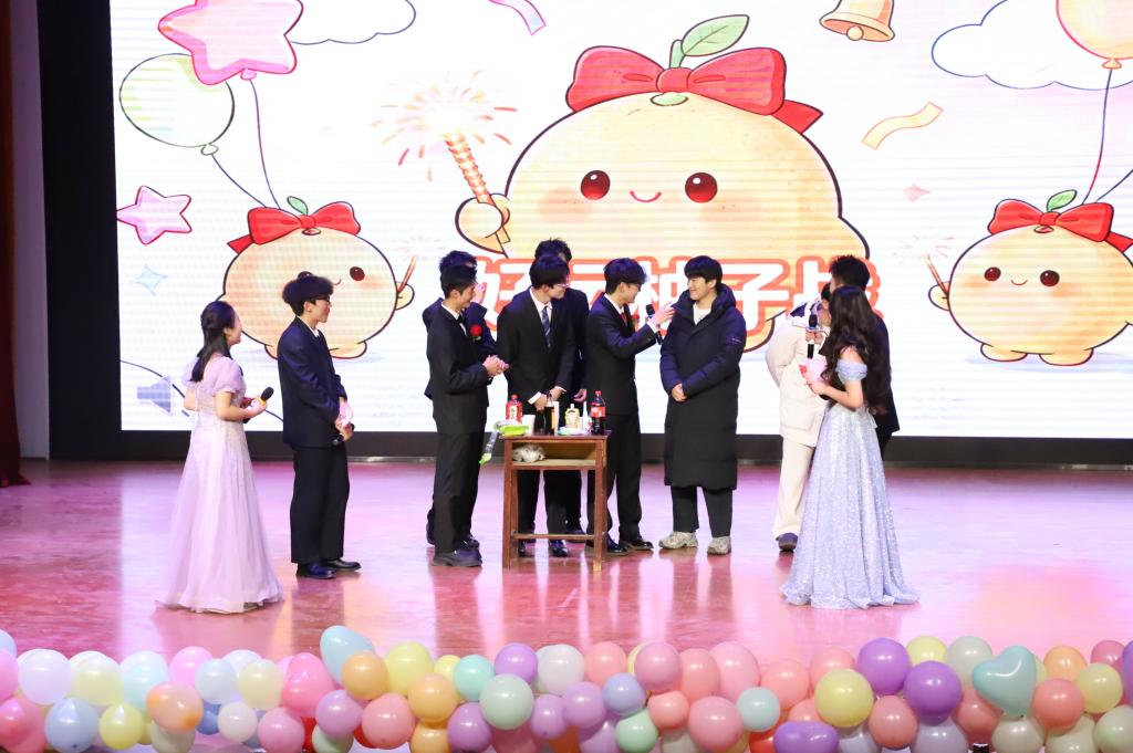 晚会尾声,赵子涵、刘淯铭、刘子宽带来合唱《你可以慢点走》,温柔的歌声缓缓响起,舒缓的旋律与治愈的歌词交织,让现场满是温情,三位演唱者用细腻声线将美好期许融入歌声。随后,同学们带着热忱登场,为这场视听盛宴再添温馨一笔,也让大家带着这份美好,奔赴新的一年。
