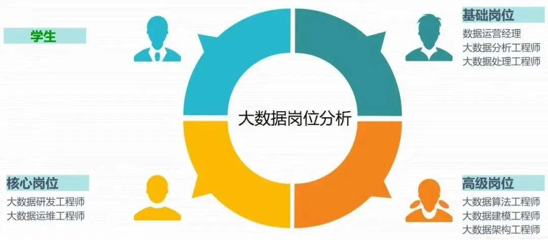 按照网络爬虫技术、大数据分析技术、可视化技术和大数据系统运维四个方向培养学生,方向课程和社会需求技术接轨,使学生毕业后能够胜任业务数据分析师、大数据开发工程师、大数据解决方案架构工程师、大数据运维工程师、数据可视化工程师等工作。