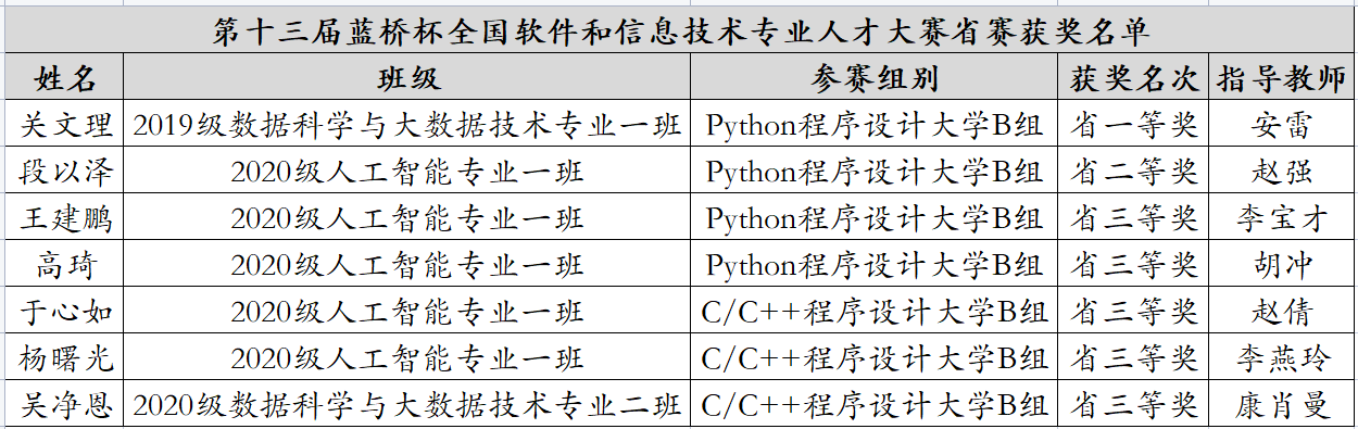 附:《第十三届蓝桥杯全国软件和信息技术人才大赛省赛获奖名单》