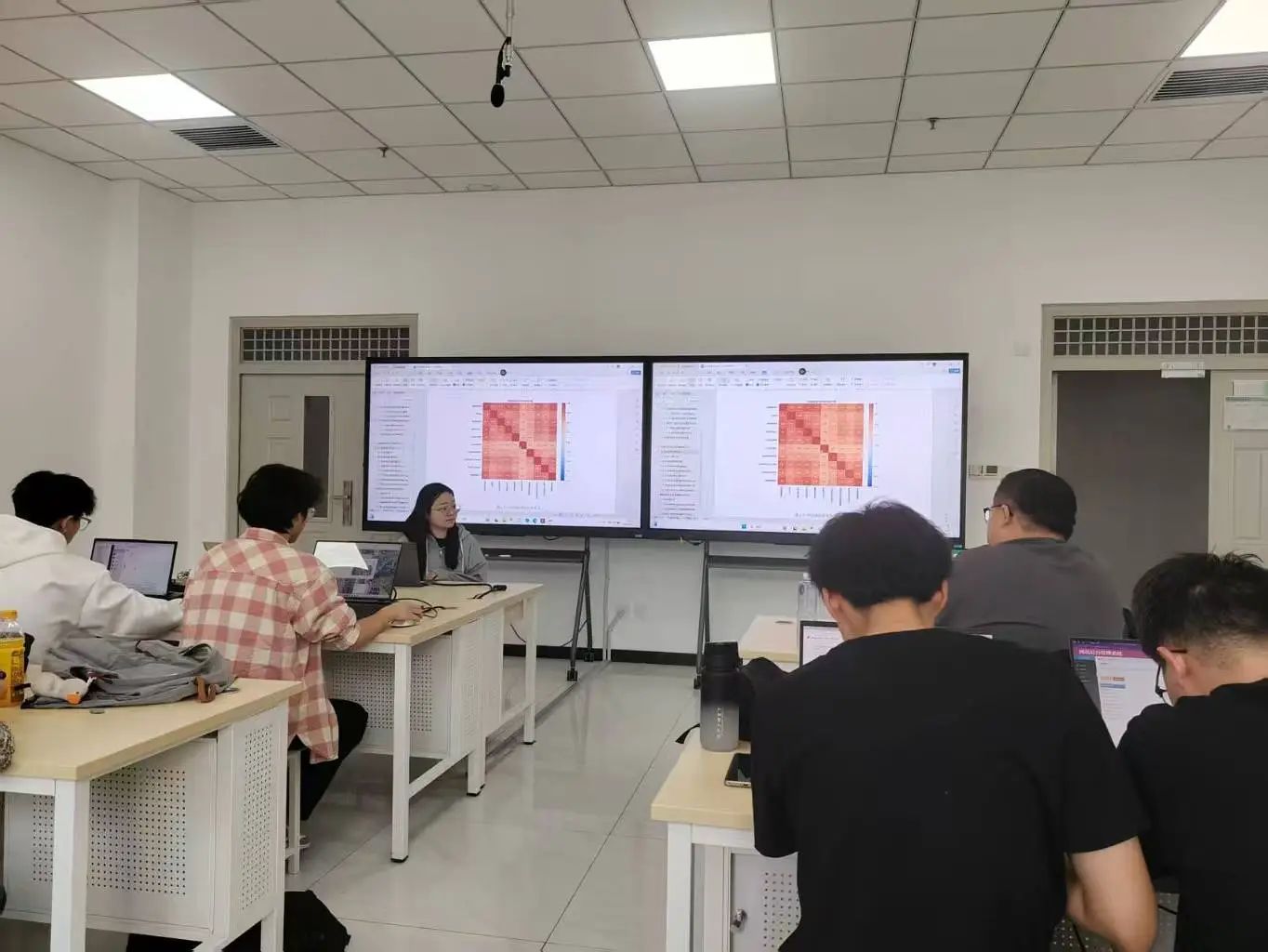 梁老师深入《数据可视化技术》课程教学一线,结合大赛命题要求,围绕数据分析、机器学习模型构建、交互式可视化开发等核心模块展开案例教学。在项目路演环节,梁霄工程师对各参赛团队的阶段性成果进行"一对一"精准指导,重点解决了三大关键问题:针对数据建模维度单一的问题,指导学生运用特征工程方法提升预测准确率;针对可视化叙事性不足的短板,引入Pyecharts动态图表强化数据故事表达;针对技术文档规范性欠缺的情况,按照企业级标准重构项目说明书框架,有效提升了参赛作品的专业水准。