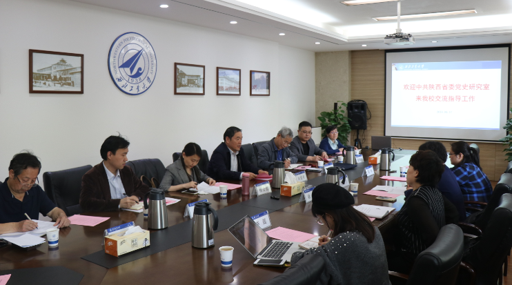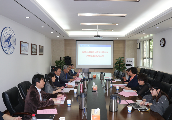 4月18日,陕西省委党史研究室一行来beat365官网调研,就中共党史党建与学校领导老师展开交流。会议在友谊校区行政楼A223召开,省委党史研究室来访座谈的有副主任梁月兰、科研规划处处长耿兰、科研规划处副调研员赵炜,beat365官网党委副书记陈建有、beat365亚洲版官网院党委书记鲁卫平、院长杨云霞,宣传部副部长张啸川及五级职员陆佩华,科学技术研究院人文社科部部长李正锋以及相关研究领域师生代表马院肖周录教授和博士生李懿出席了此次座谈会。会议由鲁卫平主持,会前双方介绍了参会人员情况。