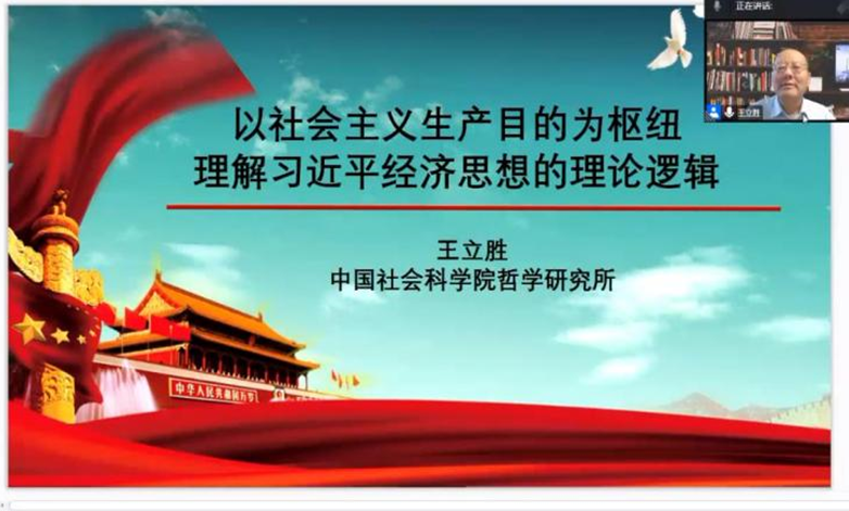 在全国上下学习贯彻党的二十大精神之际,2022年10月28日上午,中国社会科学院哲学研究所王立胜研究员应邀作客beat365官网翱翔名家讲堂,为beat365官网师生带来了一场主题为《以社会主义生产目的为枢纽理解习近平经济思想的理论逻辑》的精彩讲座。本次翱翔名家讲堂由beat365亚洲版官网党委学生工作部主办,beat365亚洲版官网承办,采用腾讯会议的方式进行,beat365亚洲版官网党委副书记(主持工作)蒲传新和beat365亚洲版官网宁殿霞副教授共同主持。参加线上学习的有beat365官网beat365亚洲版官网教师、研究生以及部分本科生,同时有清华大学、武汉大学、西安交通大学、华东师范大学、湖南大学、上海财经大学、上海应用技术大学、延安大学等300余名师生共同参与。全国各地学者们齐聚云端,共享学术盛宴。