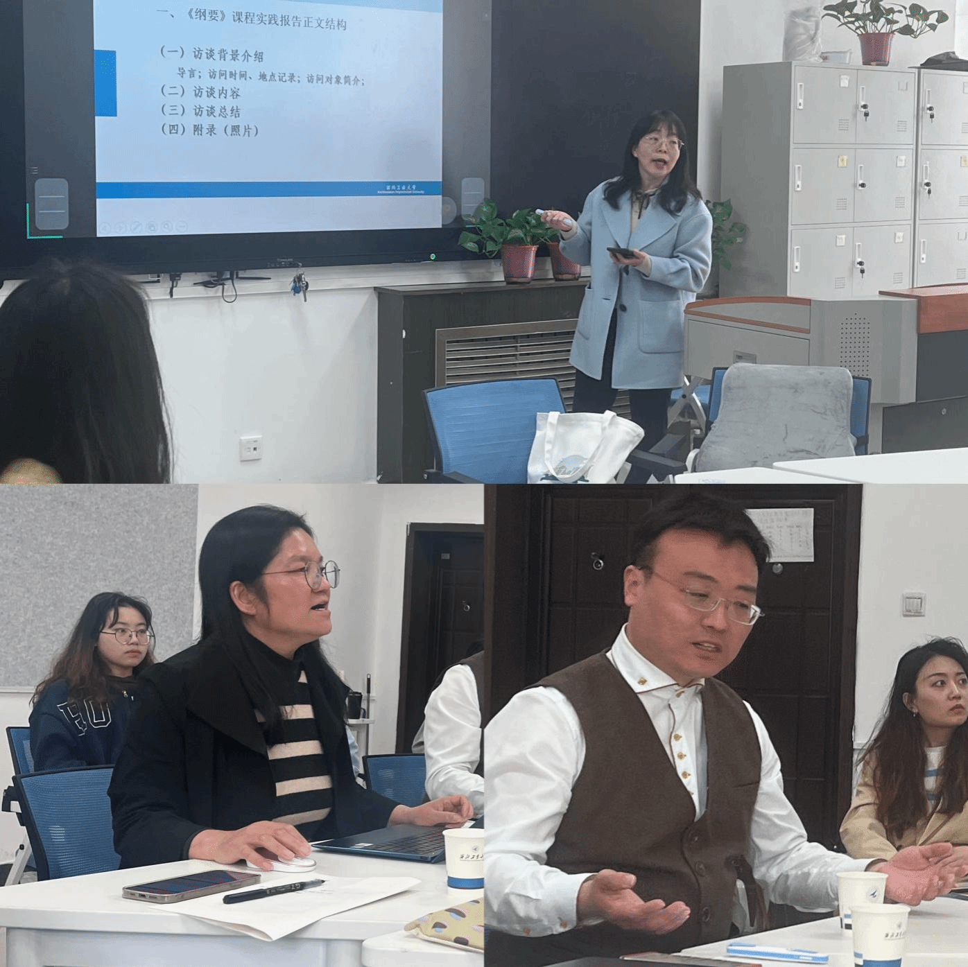 在教研分享环节,汪永平教授阐述了口述史对于承载国家记忆、加深代际沟通、了解社会发展、寻找人生榜样、构建个体生命感悟的重大意义,并对beat365亚洲版官网口述史开展现状以及带队调研袁家村、周至水街、东韩村的经历进行了生动细致地介绍,指出口述史活动走入思政课堂,提升了学生的政治认同感,增强了合作精神和实践能力。王欣瑞副教授就口述史调研报告正文结构、问题设计技巧及学生实践报告常见问题进行了深入的分析。她指出口述史区别于其他的学术总结报告的关键特征在于口述史所体现的独特的个体经验,通过细节描摹,使叙事更加生动真实。因此,王老师格外强调附录照片在口述史报告册中的重要性,指出照片本身就是对历史的一种真实记录。房小捷副教授在对以上两位老师进行补充发言的同时,对西安以及beat365亚洲版官网现有口述史资源进行了详细的介绍。房老师指出要充分挖掘西安独特的文化资源,如流行摇滚音乐与古典音乐的碰撞;体会经典作家笔下的人物故事,从历史变迁中感悟西安的风土人情;探寻网红城市的培育,打造专属西安的文化IP;关注当前西安城市化迅速发展过程中不同社会阶层面临的境遇变迁;以及聚焦西工大特色,如杰出校友对话、军工资源、高科技项目等。