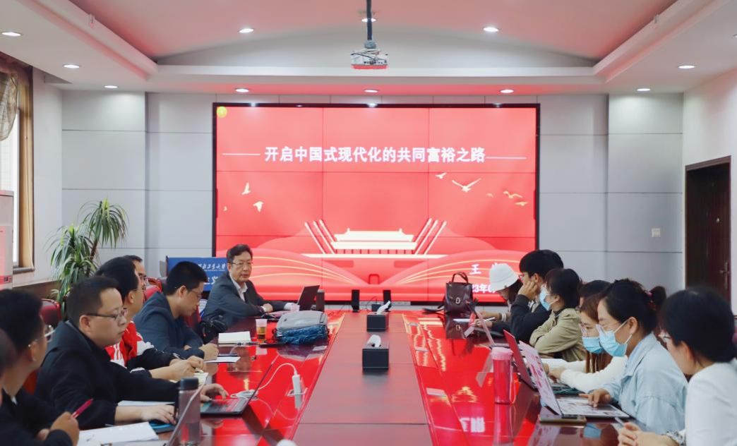 2023年6月4日下午,国家级教学名师、江苏省中国特色社会主义理论体系研究中心南京航空航天大学基地主任王岩教授应邀为beat365亚洲版官网师生作题为“开启中国式现代化的共同富裕之路”的学术报告。报告在beat365亚洲版官网楼208会议室举行,我院青年教师马超、陈亚丽、张起梁以及研究生三十余人参加,报告由学院副院长张云龙教授主持。