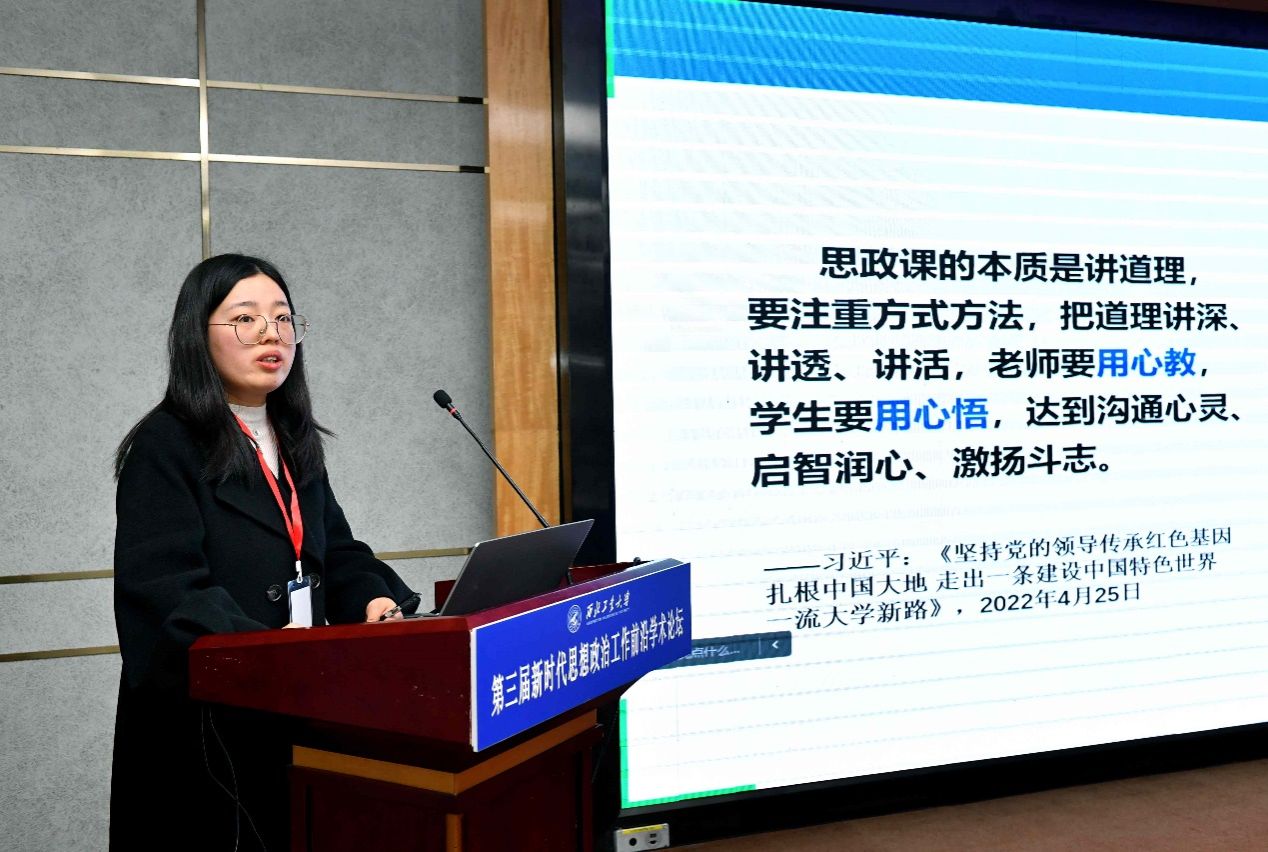 西安电子科技大学beat365亚洲版官网孙纪瑶副教授从内在逻辑、价值意蕴、实践进路三个维度探讨了“伟大建党精神融入新时代大学生理想信念教育”的问题。