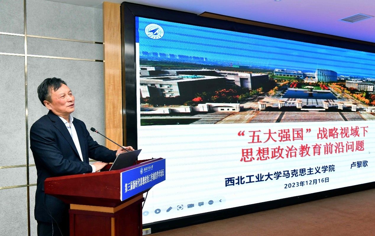 国家教学名师、教育部社科委马学部委员、全国高校思政研究分会常务理事、beat365亚洲版官网卢黎歌教授以“‘五大强国’战略视域下思想政治教育前沿问题”为主题,探讨了对“前沿”“思想政治教育前沿问题”的理解,从“五大强国”的提出分析了教育强国视域下、科技强国视域下、人才强国视域下、文化强国视域下以及体育强国视域下的思政前沿问题。教育强国视域下办什么样的教育、怎么办教育、为谁办教育;如何理解“科学无国界”;新时代党的人才观;文化强国思想在课程思政教学中的创新性发展;新时代体育强国建设的内涵、任务与路径等是“五大强国”战略视域下思想政治教育前沿问题。