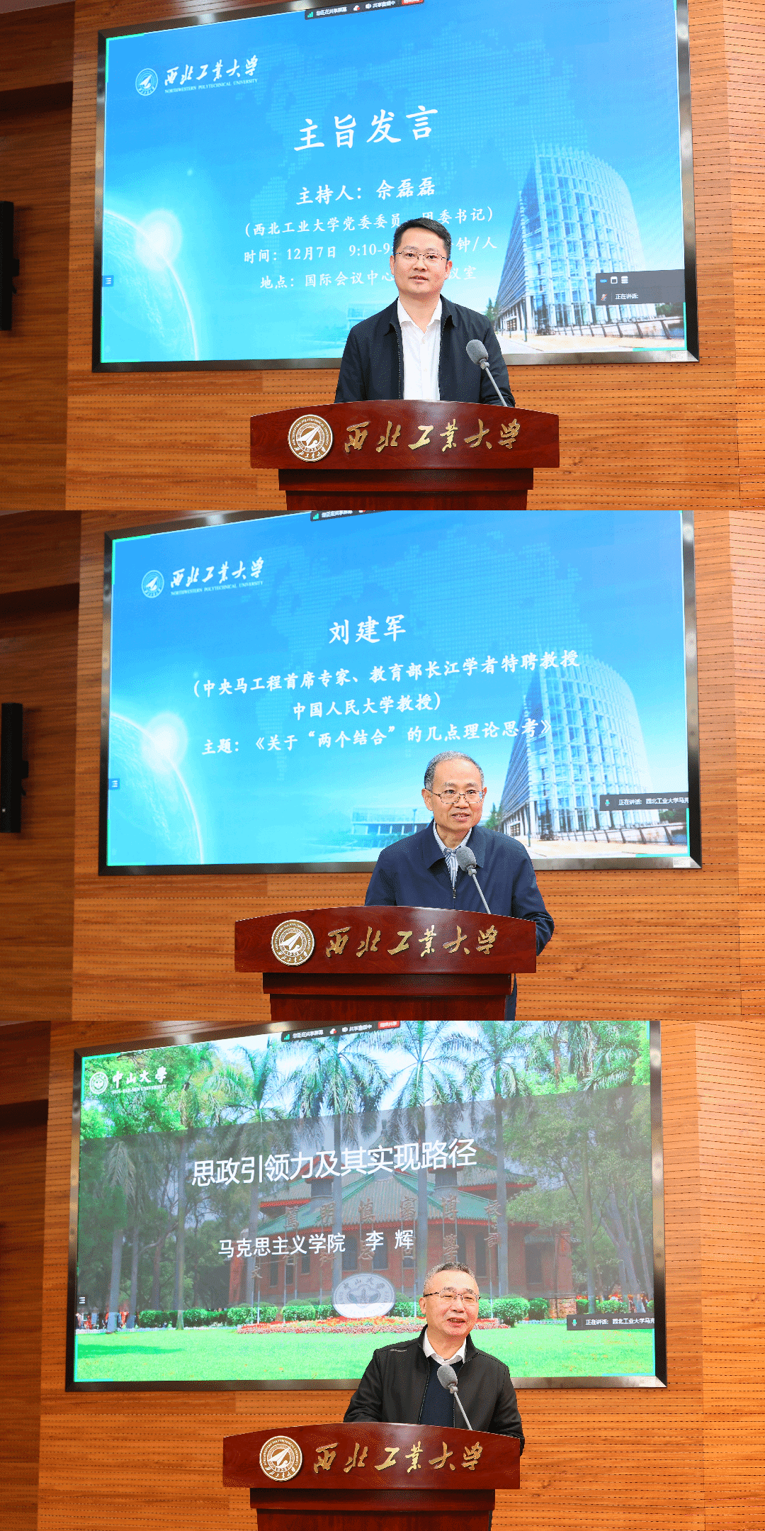 开幕式后,主旨发言由beat365亚洲版官网团委书记佘磊磊主持。在主旨发言中,中国人民大学刘建军教授、中山大学李辉教授作了精彩纷呈的发言。中央马克思主义理论研究和建设工程首席专家、国家领军人才、教育部特聘教授刘建军围绕“关于‘两个结合’的几点理论思考”这一主题进行了主旨发言,从定位、层次、又一次思想解放、新的文化生命体四个方面深入浅出的解读了关于“两个结合”的几点思考。国家教学名师,李辉教授作了“思政引领力的可行路径”的主题报告。他从自身经历出发,从思政引领力的内涵、影响思政引领力的因素、思政引领力实现的路径方面进行了深入的探讨。