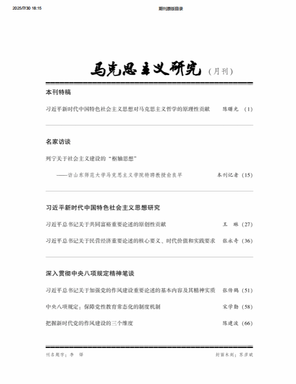 学院张永奇教授在权威期刊《马克思主义研究》发表学术论文