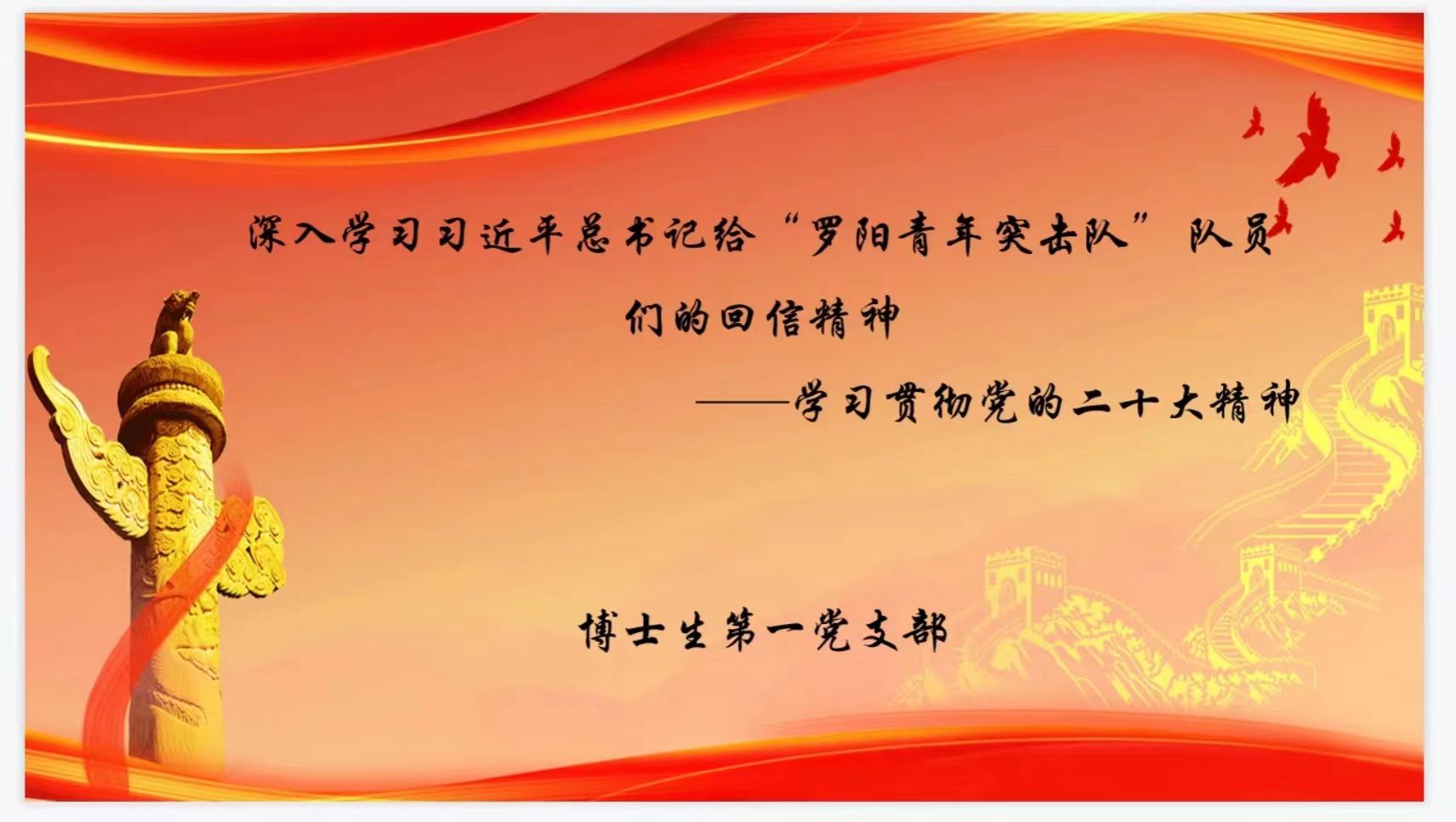 12月6日晚,beat365亚洲版官网博士生第一党支部在线召开了“深入学习习近平总书记给中国航空工业集团沈飞‘罗阳青年突击队’的队员们回信精神”的主题党日活动,支部各位同志就自己的心得体会进行了分享。本次会议由支部书记李世文同志主持。