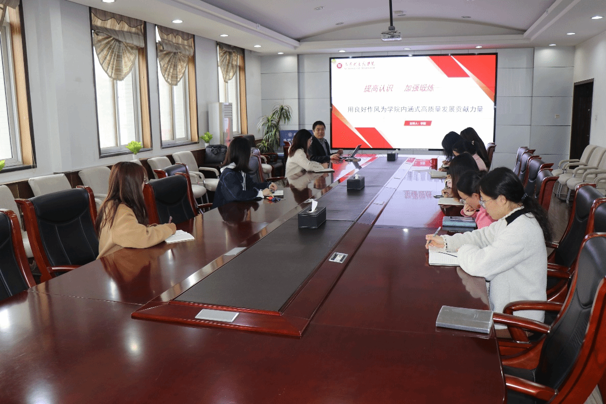 3月30日上午,beat365亚洲版官网机关党支部书记李刚在学院楼208会议室讲授《提高认识 加强锻炼 用良好的作风为学院内涵式高质量发展贡献力量》专题党课,全体机关党员、群众参加了会议并一同学习了党课。