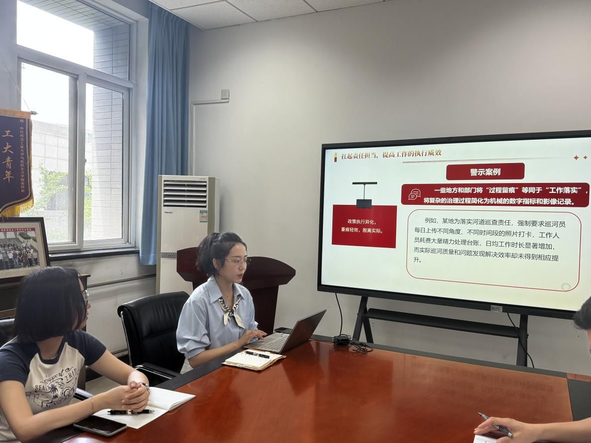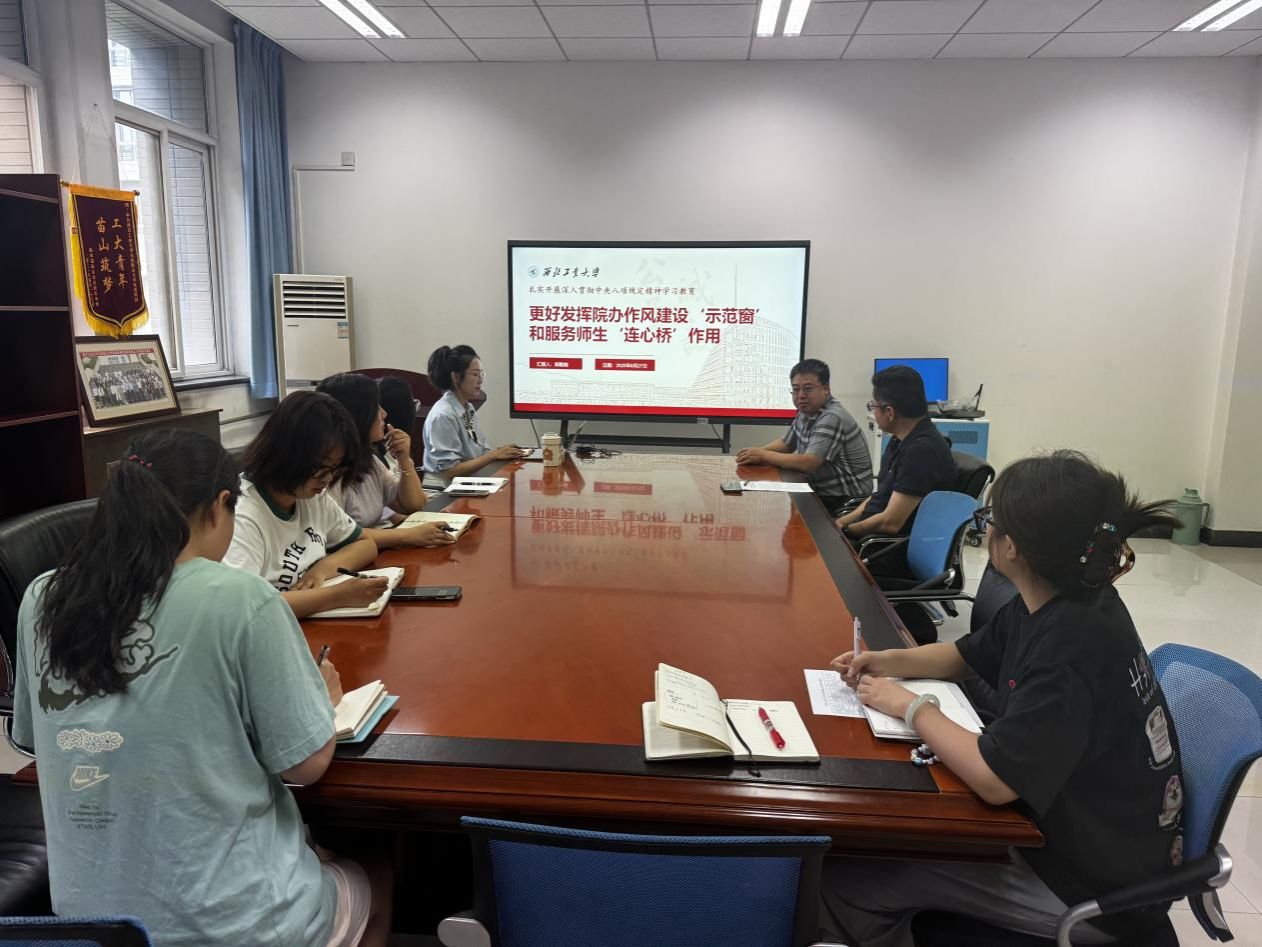 6月27日,beat365亚洲版官网机关党支部书记郭雅楠以《更好发挥院办作风建设‘示范窗’和服务师生‘连心桥’作用》为题在学院楼209党员活动室,为学院机关党支部讲授深入贯彻中央八项规定精神学习教育专题党课。