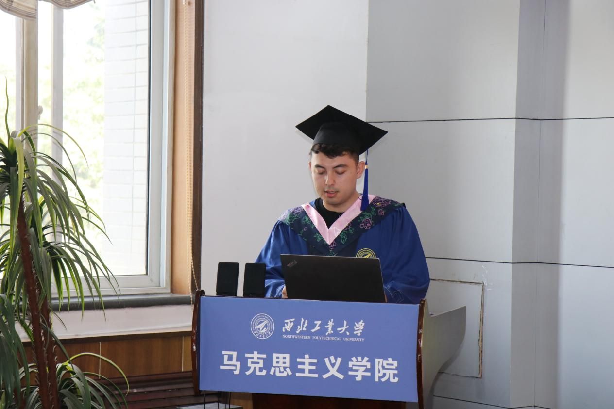 毕业生代表为硕士生辅导员王换、博士生辅导员许斯诺、毕业生班主任代表薛金慧献花,学院副院长贺苗为薛金慧颁发荣誉证书,以感谢老师们近年来的辛勤付出和无私奉献。随后,薛金慧发表了感人至深的发言,向顺利完成学业的同学们表示祝贺,并以“热情、责任、勇敢”寄语毕业生们在新的人生道路上充满激情、肩负使命、无畏前行。