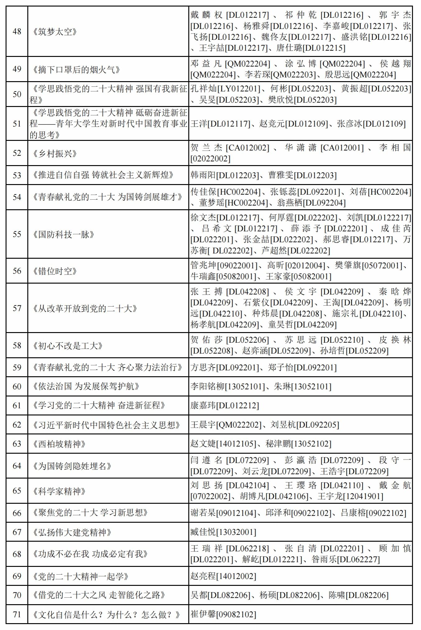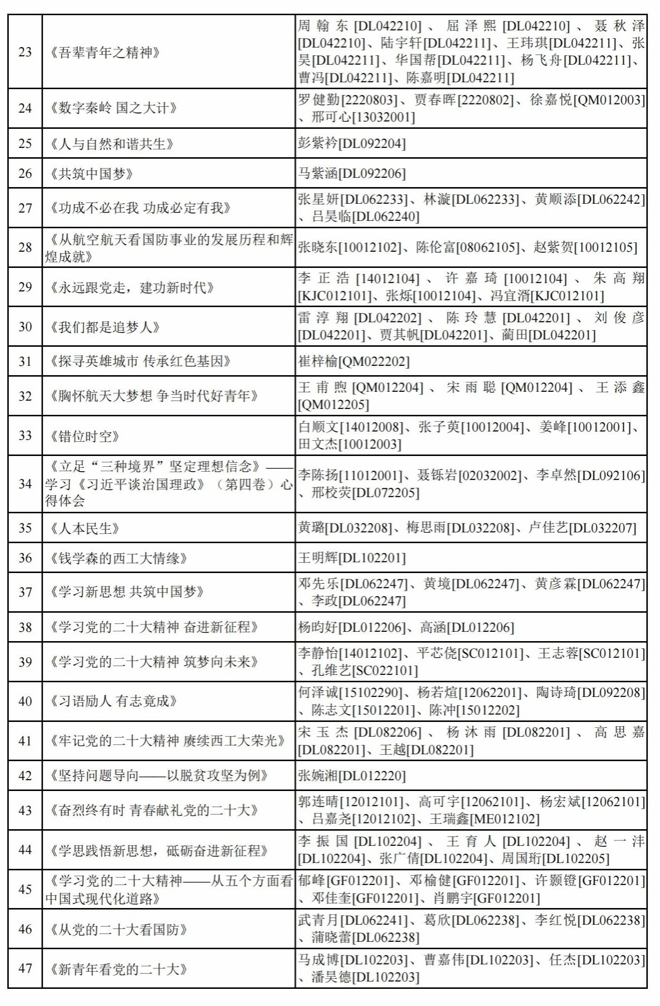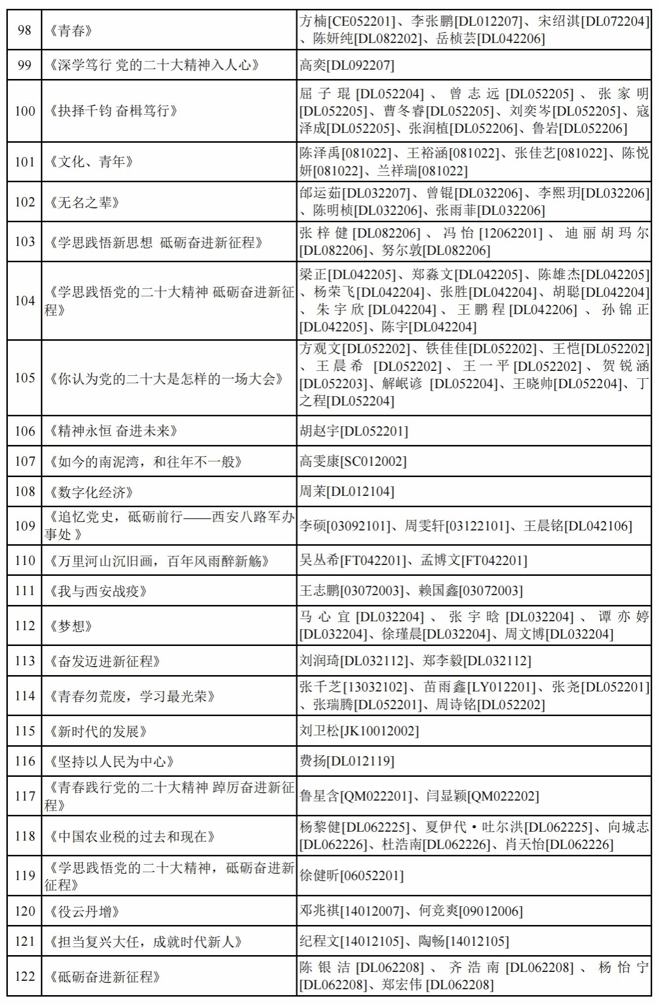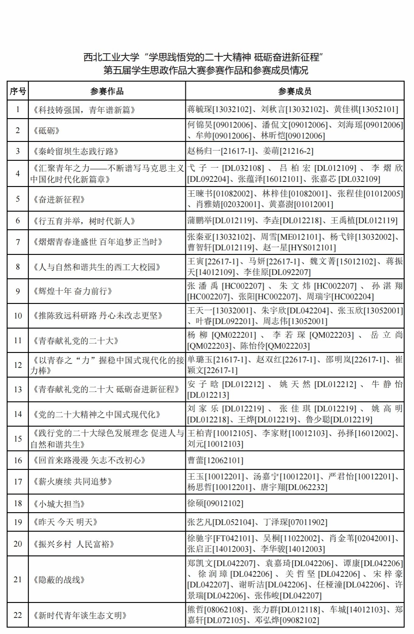 为引导全校学生充分认识党的二十大召开的重大意义,深入学习宣传贯彻党的二十大精神,深刻领会把握新时代新征程的使命任务,切实把思想和行动统一到党的二十大精神上来,把智慧和力量凝聚到实现党的二十大确定的各项任务上来,beat365亚洲版官网党委学生工作部、beat365亚洲版官网面向全校学生开展“学思践悟党的二十大精神 砥砺奋进新征程”第五届学生思政作品大赛。现将参赛作品和参赛成员予以公示。公示期间如有问题请向beat365亚洲版官网相关负责人反映。
