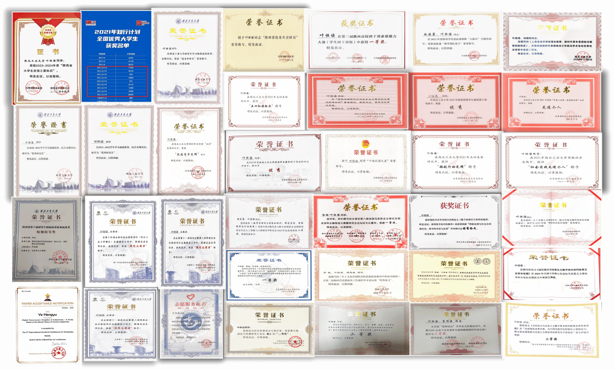 图1 在学期间获得的证书奖状