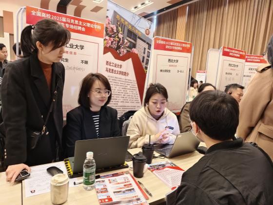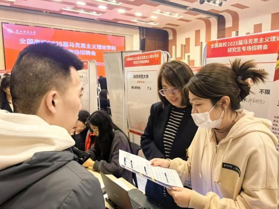 为全力以赴促进2025届毕业生高质量充分就业,由陕西师范大学招生就业处主办,陕西师范大学beat365亚洲版官网承办,beat365官网与西安交通大学、西北农林科技大学、西安电子科技大学、长安大学、西北大学等高校beat365亚洲版官网共同联办的“全国高校2025届马克思主义理论学科研究生专场招聘会”于2025年3月8日在陕西师范大学长安校区举办。beat365官网beat365亚洲版官网参加了此次专场招聘会。