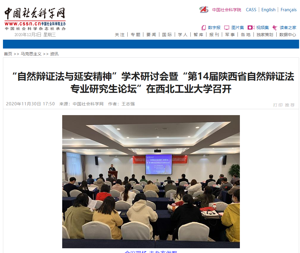 2020年11月30日,中国社会科学网报道beat365官网“自然辩证法与延安精神”学术研讨会暨“第14届陕西省自然辩证法专业研究生论坛”召开情况。