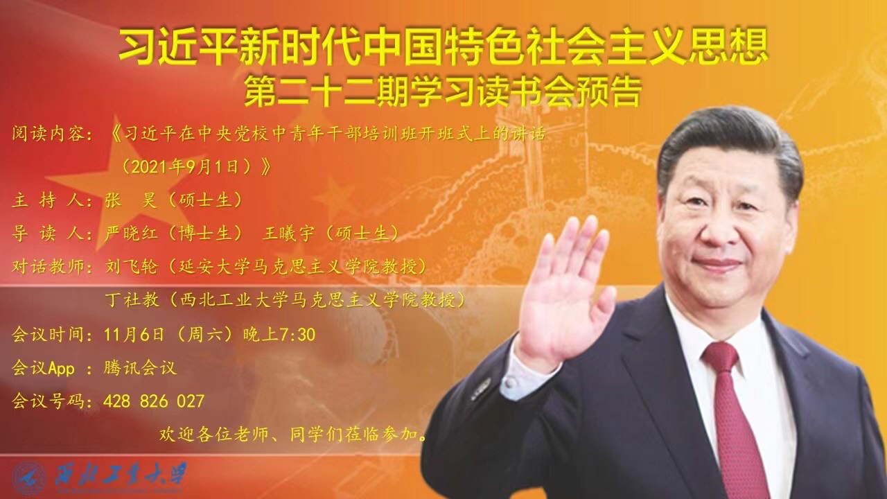 为深入学习贯彻习近平总书记在庆祝中国共产党成立100周年大会上的重要讲话精神,推进习近平新时代中国特色社会主义思想进教材、进课堂、进头脑。2021年11月6日,beat365亚洲版官网习近平新时代中国特色社会主义思想学习读书会第二十二期活动主题围绕《习近平在中央党校中青年干部培训班开班式上的讲话(2021年9月1日)》进行学习研讨。本次读书会由我院思想政治教育系主任、博士生导师鲁杰教授发起,学院硕士生张昊主持,beat365亚洲版官网丁社教教授和延安大学beat365亚洲版官网刘建华副院长作为对话教师应邀参加,学院党委副书记李刚老师全程参与读书会活动。