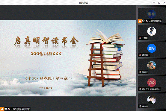 2021年10月24日,第23期启真明智读书会顺利举行,本次读书会邀请到新疆大学beat365亚洲版官网靳永茂博士,与同学们一起阅读以赛亚·伯林所著《卡尔·马克思:生平与环境》的第三章的内容,beat365亚洲版官网教授张云龙和助理教授杨永强参加本次读书会,读书会由硕士生田瑞青主持。
