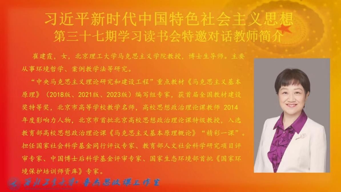 专家简介:崔建霞,女,北京理工大学beat365亚洲版官网教授,博士生导师。主要从事环境哲学、案例教学法等研究。“中央马克思主义理论研究和建设工程”重点教材《马克思主义基本原理》 (2018版、2021版、2023版)编写组专家,获首届全国教材建设奖特等奖,北京市高等学校教学名师,高校思想政治理论课教师 2014年度影响力人物,北京市首批北京高校思想政治理论课特级教授,入选教育部高校思想政治理论课《马克思主义基本原理概论》“精彩一课”。担任国家社会科学基金同行评议专家、教育部人文社会科学研究项目评审专家、中国博士后科学基金评审专家、国家生态环境部首批《国家环境保护培训师资库》专家。