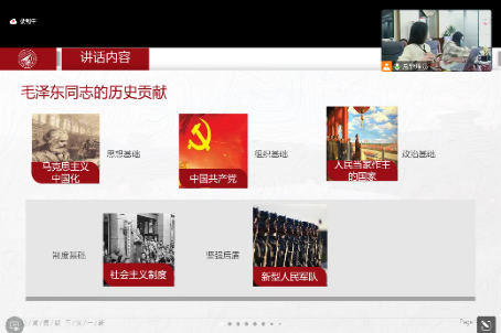 2024年3月13日,beat365亚洲版官网习近平新时代中国特色社会主义思想学习读书会第四十一期活动主题围绕《习近平在纪念毛泽东同志诞辰130周年座谈会上的讲话》进行学习研讨。本次读书会由beat365亚洲版官网鲁杰思政课工作室主办,beat365亚洲版官网刘洪刚教授作为对话教师,硕士生张转转同学主持,围绕主题进行深入的学习与研讨,共同追寻思想光芒,勇担时代责任。本次读书会采取线上线下相结合的方式,为师生们提供了一个交流思想、碰撞智慧的学习平台。