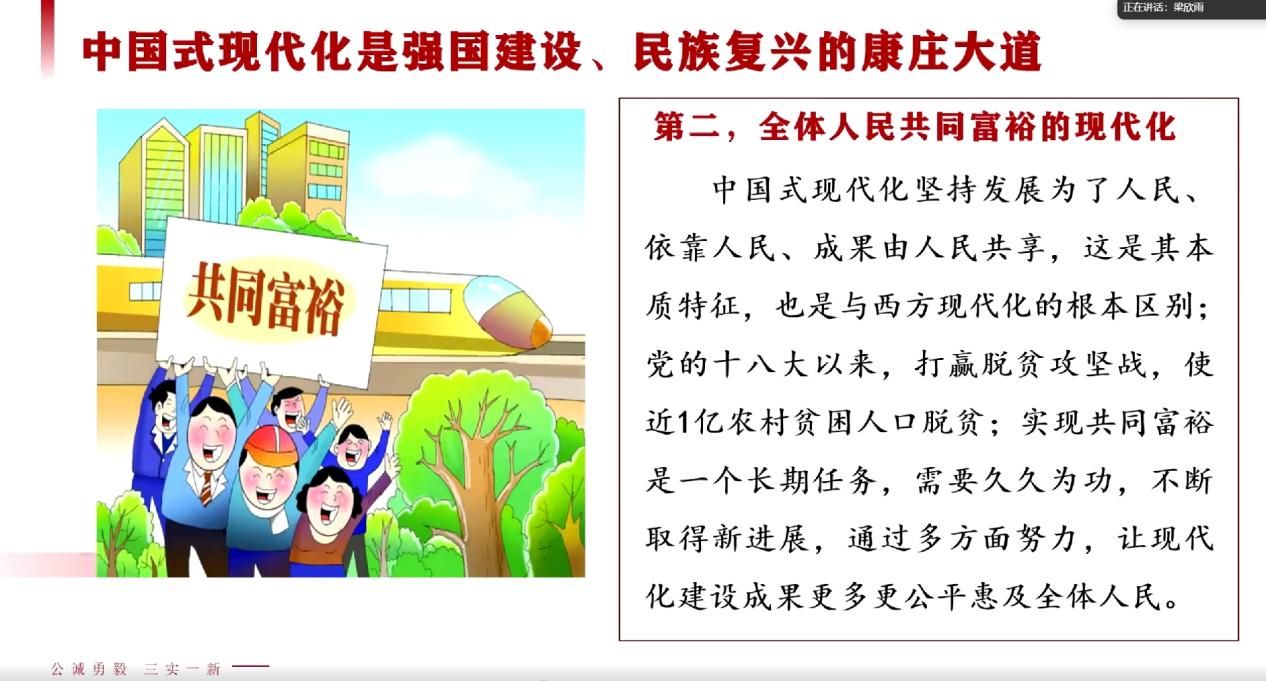beat365亚洲版官网硕士生王卓昕同学作为首位导读人,在认真研读《以中国式现代化全面推进强国建设、民族复兴伟业》文本内容的基础上,围绕中国式现代化是强国建设、民族复兴的康庄大道这一点,通过文献资料收集整理,把相关的一些观点进行了系统梳理,内容丰富、逻辑清晰,与大家进行了学习分享。推进中国式现代化是一个长期的任务,还有许多东西需要认识深化,要不断加强理论研究和实践探索。