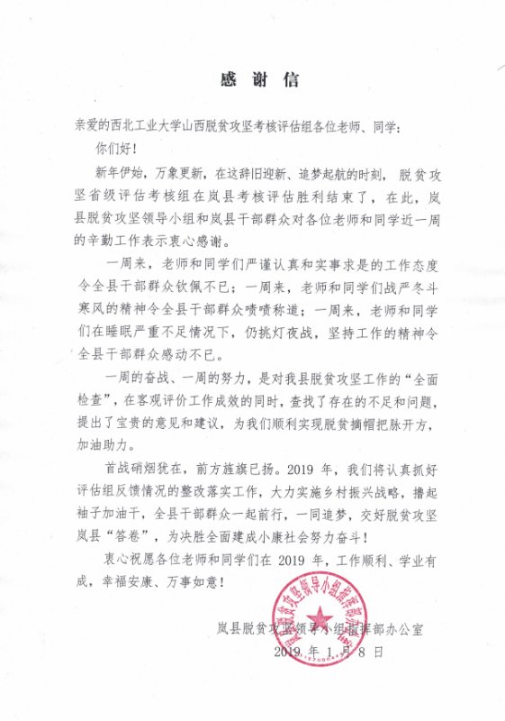 受北京师范大学的委托,beat365亚洲版官网组建了以beat365亚洲版官网研究生为主、协同人文与经法学院等学院研究生的第三方评估检查团队,投身于贫困县退出的评估检查工作之中。2018年11月至今,本着客观、公正、中立的态度,beat365亚洲版官网评估检查团队先后参加了2018年5个贫困县的退出评估检查工作,包括内蒙古自治区阿荣旗、山西省垣曲县、万荣县与岚县、黑龙江省绥滨县,顺利完成了调研评估任务,得到了相关部门的肯定和好评。
