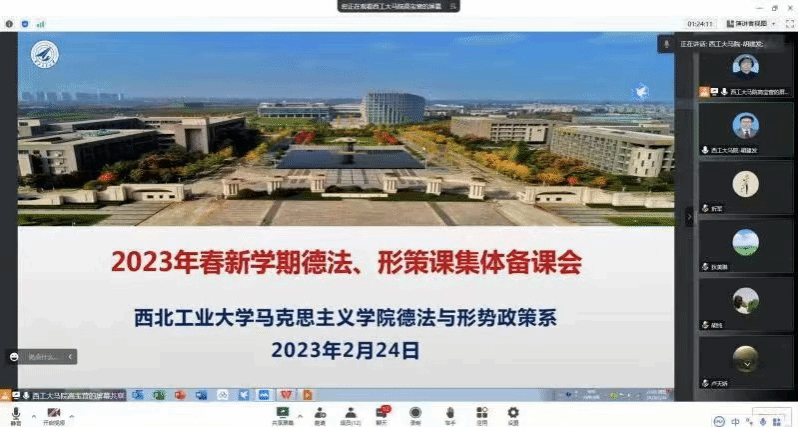 《中国近现代史纲要》课程组于2月22日晚组织开展线上集体备课会。会议由中国近现代史基本问题研究系教学主任房小捷副教授主持。会议首先传达了“开学第一课”的有关会议精神,就新学期教学任务回归校园常态化需要给学生强调到的重点方向进行讨论,与会教师一致认为,教学方面应结合具体专题内容加强对学生的课堂引导,组织开展丰富的讲座和沙龙活动,帮助学生顺利衔接过渡至新学期的学习生活。会议还重点强调了新学期课堂规范,要求全体思政课教师充分发挥先锋模范作用,营造团结奋进的良好氛围,齐心协力推动教学任务顺利进行。