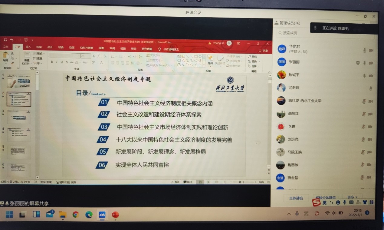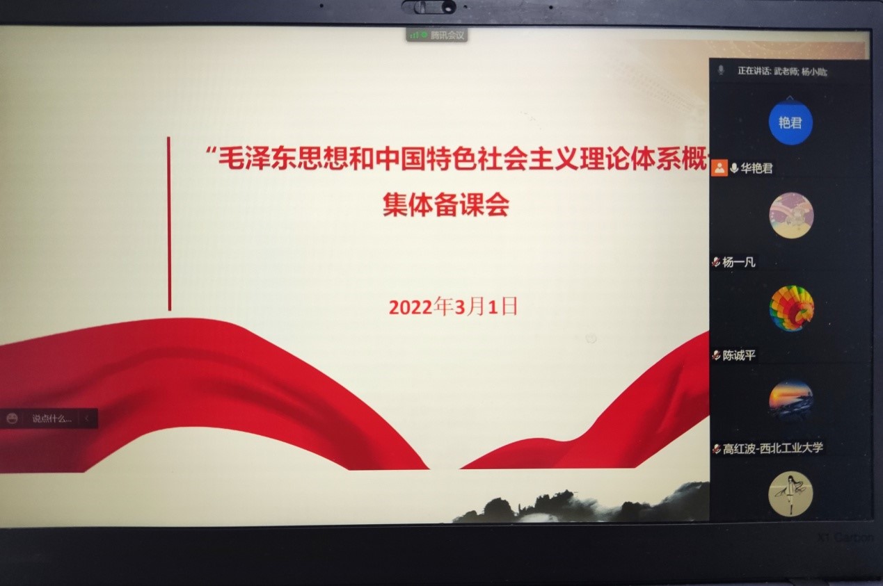 2022年3月1日晚7点30分,beat365亚洲版官网“毛泽东思想和中国特色社会主义理论体系概论”教学团队召开线上集体备课会,做好迎接新学期的充分准备。本次集体备课主题是明确新学期“毛泽东思想和中国特色社会主义理论体系概论”课程的教学安排与专题教学内容研讨。会议由马克思主义中国化研究系教学主任华艳君老师主持,马中化系全体教师参加。