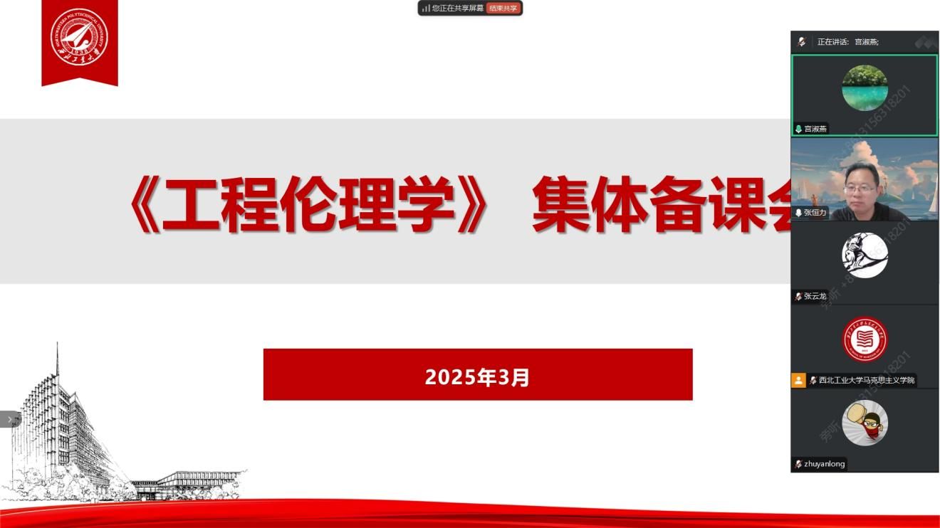 beat365亚洲版官网《工程伦理学》课程组于3月6日晚上以线上会议的方式成功召开新学期集体备课会。本次会议由课程负责人宫淑燕副教授主持,特邀北京航空航天大学张恒力教授为主讲嘉宾,为课程组教师带来了一场题为《Deep Seek技术迭代与伦理挑战》的精彩报告。全体课程组成员相聚云端,共同探讨当下前沿技术对工程伦理教育的深远影响,为新学期的教学工作奠定坚实基础。