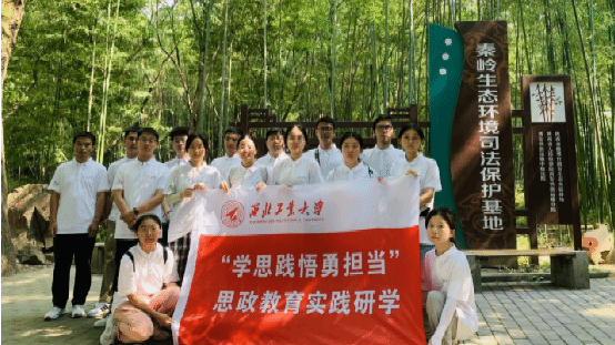 图为 实践队于秦岭生态环境司法保护基地门前合影