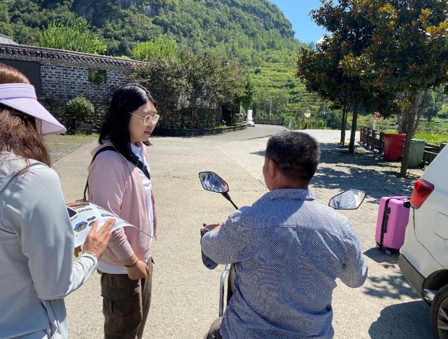 实践队抵达陕西汉阴凤堰古梯田移民生态博物馆已适逢正午,炎炎烈日丝毫没有影响成员们想要一探这座“活体博物馆”的期盼心情,“活体博物馆”是我国第一座以移民农耕文化为主题,以自然山水为背景,以古梯田为展品,以民风民俗为辅助,保护和展示原生态生产生活方式和旅游的开放式生态博物馆。成员们感受着“山、水、田、屋、寨、村、庙、农”一体化的雅致与壮美,充分体现出汉阴县为保护和保存文化遗产的真实性、完整性和原生性的意志与努力。在农遗致富方面,凤堰古梯田移民生态博物馆的良性发展,直接带动核心区域6个行政村近万人走上共同致富之路,凤堰古梯田移民生态博物馆成为乡村振兴的旗帜和典范。