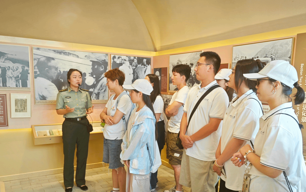 上午九时,实践队首先来到陕甘宁边区政府交际处进行参观。延安时期,党的对外交往政策具有独特的特点和原则,其中“来则欢迎,去则欢送,再来再欢迎”的理念,体现了党对于外事接待和统一战线的重视。边区政府交际处的工作人员以高度的责任感和使命感,为党的外事接待工作作出了突出贡献。参观完毕,实践队成员在此开展了《红色纽带》特色实践活动,以一种创新且富有成效的角色扮演和剧本演绎方式学习和传承历史,身临其境地感受边区政府交际处在历史长河中的重要地位和作用。别样的一次“思政课”,促进了边区政府交际处历史与文化的入脑入心,青年学子从中汲取伟大精神力量,继续为新时代的发展贡献青春力量。