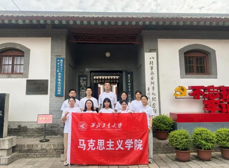为深入学习贯彻党的二十大精神和党的二十届三中全会精神,充分发挥革命文物在思想政治教育中的独特作用,beat365亚洲版官网“新时代西工大青年延安行先锋队”从西安出发,赴咸阳、铜川、延安等地开展专题调研活动。7月11日,在指导老师杜轶伦的带领下,实践队一行10人第一天先后走访八路军西安办事处纪念馆、西安事变纪念馆、安吴青年训练班革命旧址和薛家寨革命旧址等地,通过实地考察、专题研讨、思政课宣讲等形式,探索新时代用革命文物讲好“大思政课”的创新路径。